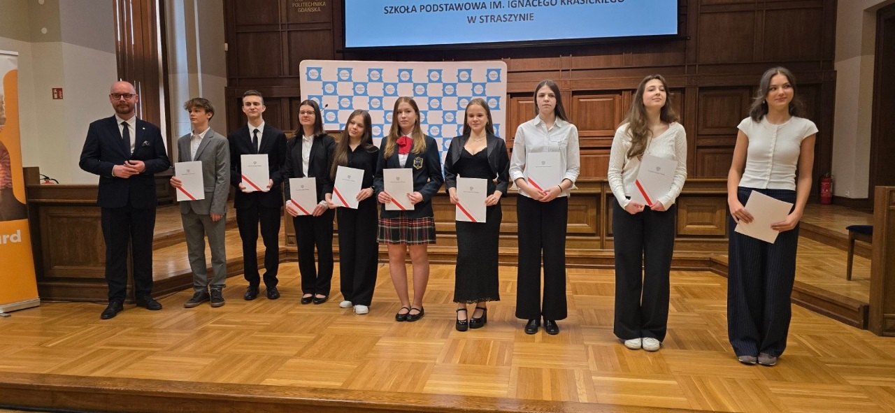 W dniu 14 kwietnia 2026r. odbyła się Wojewódzka Gala wręczenia zaświadczeń laureatom wojewódzkich konkursów przedmiotowych Pomorskiego Kuratora Oświaty. Naszą szkołę reprezentowali: Kosma Pałkowski - laureat Wojewódzkiego Konkursu z Geografii oraz Marta Kaczewska i Arseni Vankovich - laureaci Wojewódzkiego Konkursu z Chemii. Jesteśmy dumni z naszych uczniów!
