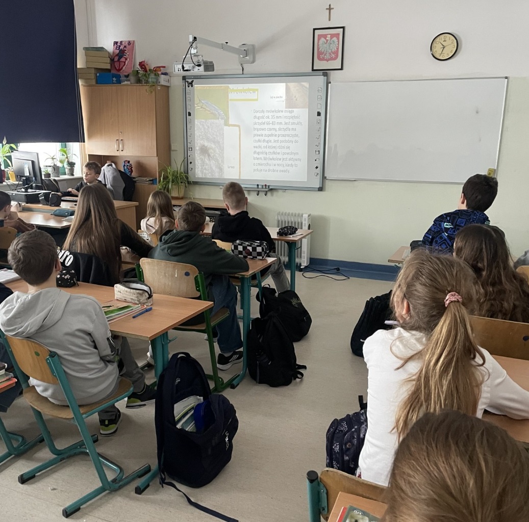 Uczeń klasy 4 Tomek Klim udowodnił, że wiek to tylko liczba, gdy w grę wchodzi prawdziwa pasja. Podczas specjalnej prezentacji dla starszych kolegów i koleżanek podzielił się swoją ogromną, specjalistyczną wiedzą na temat owadów i pajęczaków.