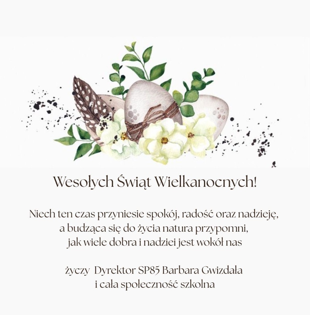 Życzenia zdrowych i radosnych Świąt Wielkanocnych - Szkoła Podstawowa nr 85 im. Zrzeszenia Kaszubsko-Pomorskiego